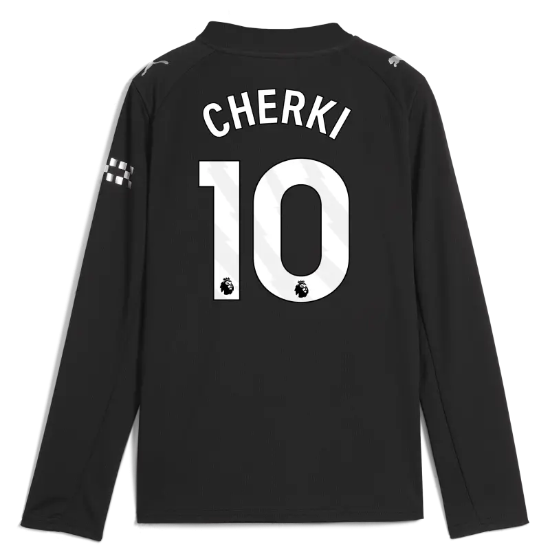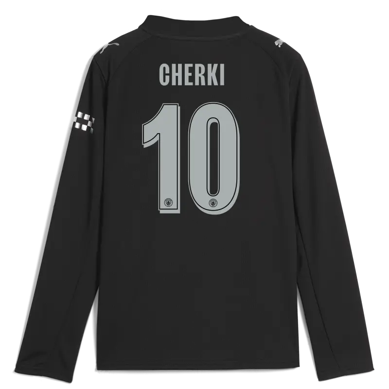 Kids’ Manchester City Away Jersey Green 2025/26 Long Sleeve With CHERKI 10 Printing