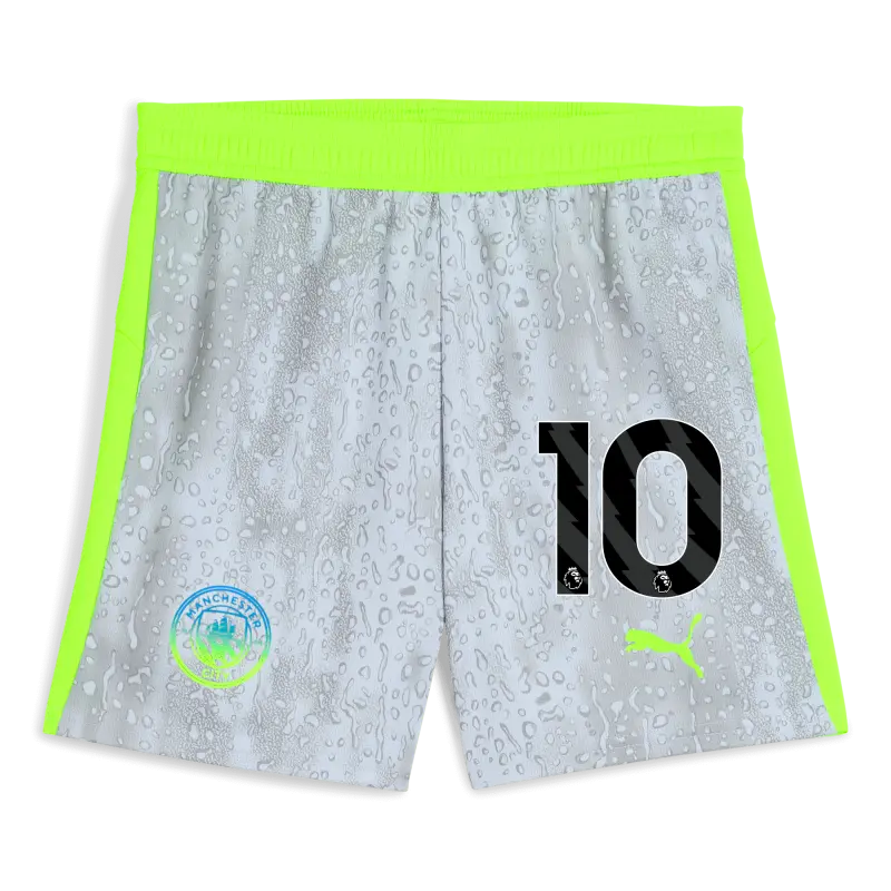 Kids’ Manchester City Football Shorts Green 2025/26 With #10
