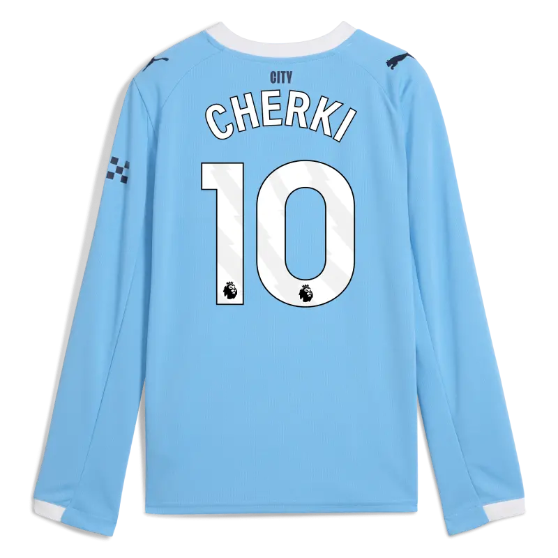 Kids’ Manchester City Home Jersey Green 2025/26 Long Sleeve With CHERKI 10 Printing