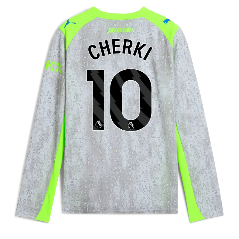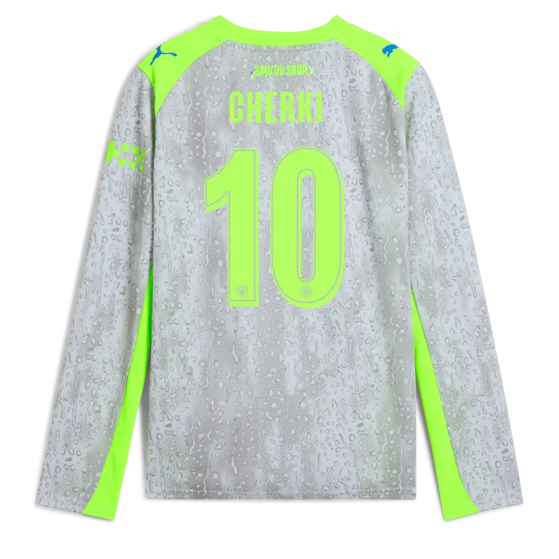 Kids’ Manchester City Third Jersey Green 2025/26 Long Sleeve With CHERKI 10 Printing