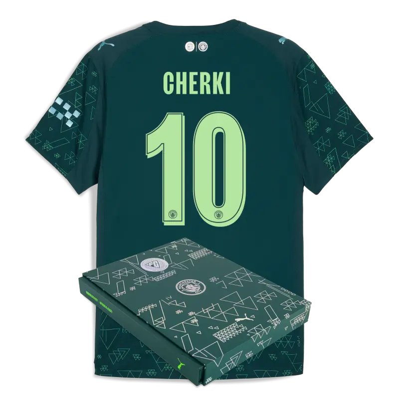 Manchester City Away Authentic Jersey Green 2025/26 With CHERKI 10 Printing in Gift Box