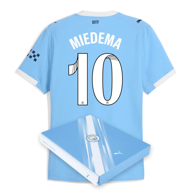 Manchester City Home Authentic Jersey 2025/26 With MIEDEMA 10 Printing in Gift Box