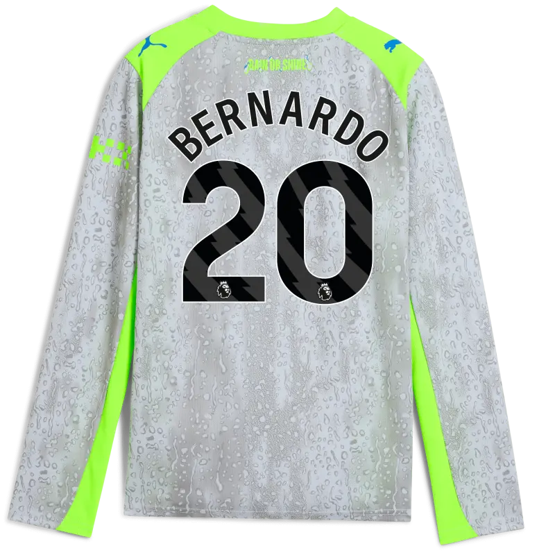 Manchester City Away Jersey 2025/26 Long Sleeve With BERNARDO 20 Printing