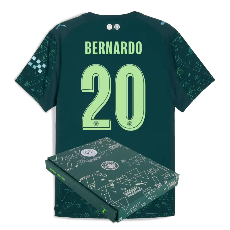 Manchester City EA SPORTS FC Authentic Jersey Green 2025/26 With BERNARDO 20 Printing in Gift Box