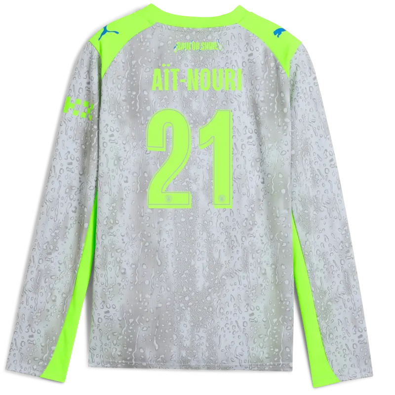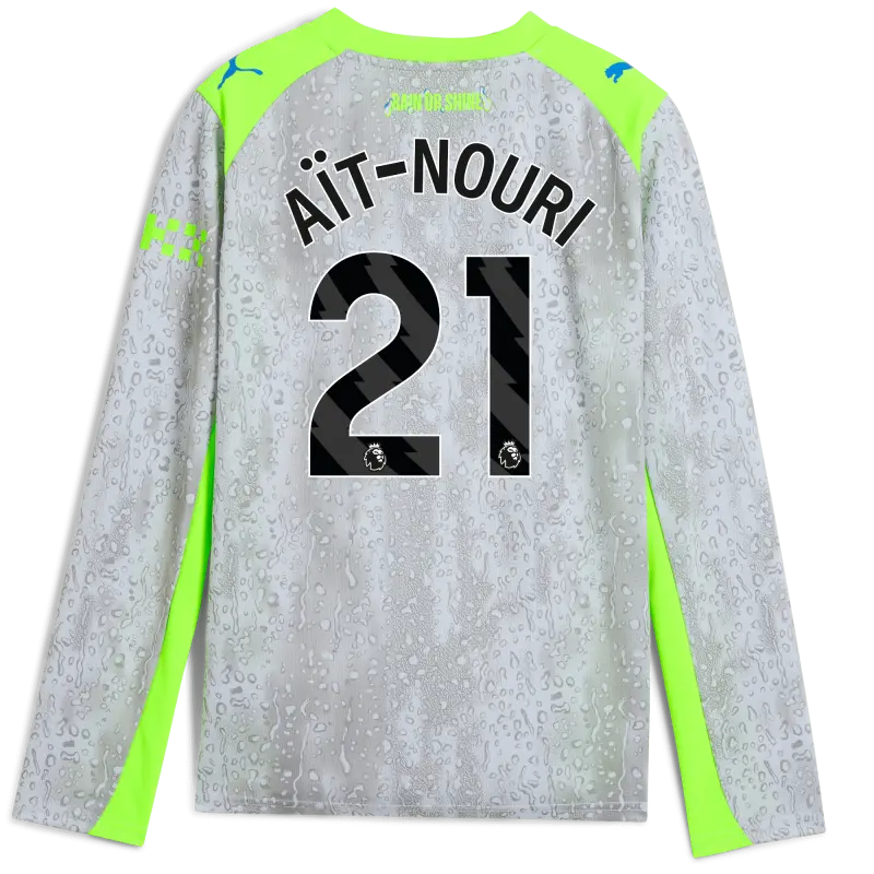 Kids’ Manchester City Third Jersey 2025/26 Long Sleeve With AÏT-NOURI 21 Printing