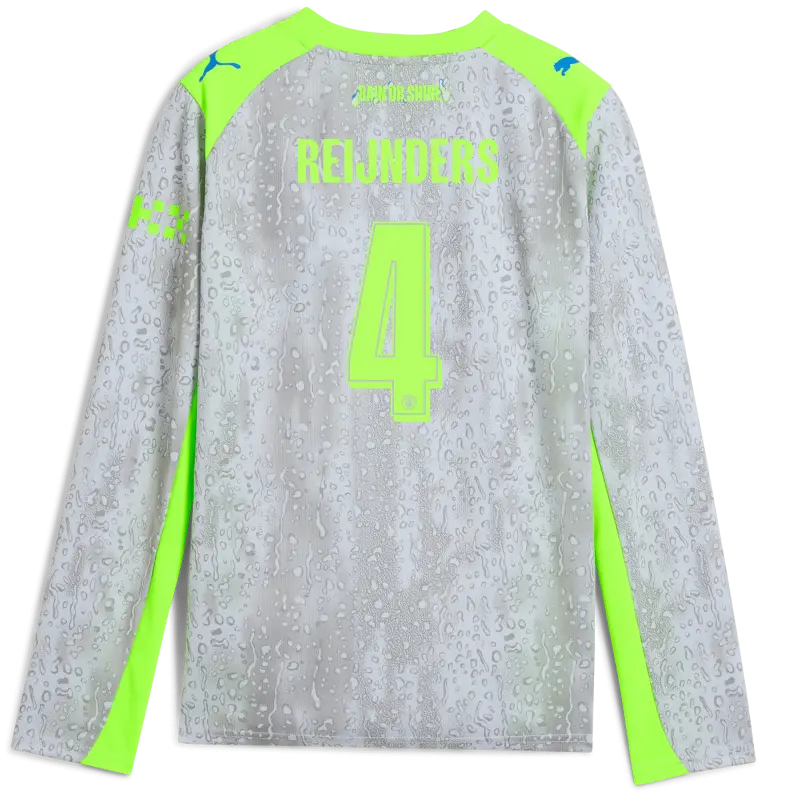 Kids’ Manchester City Third Jersey Green 2025/26 Long Sleeve With REIJNDERS 4 Printing