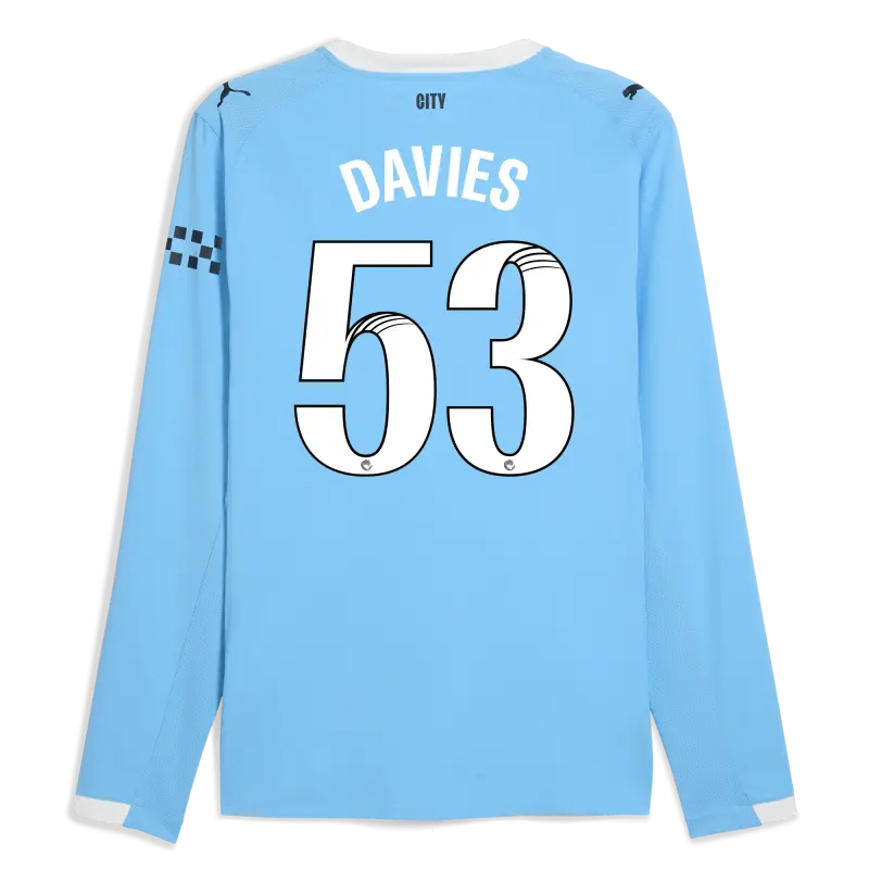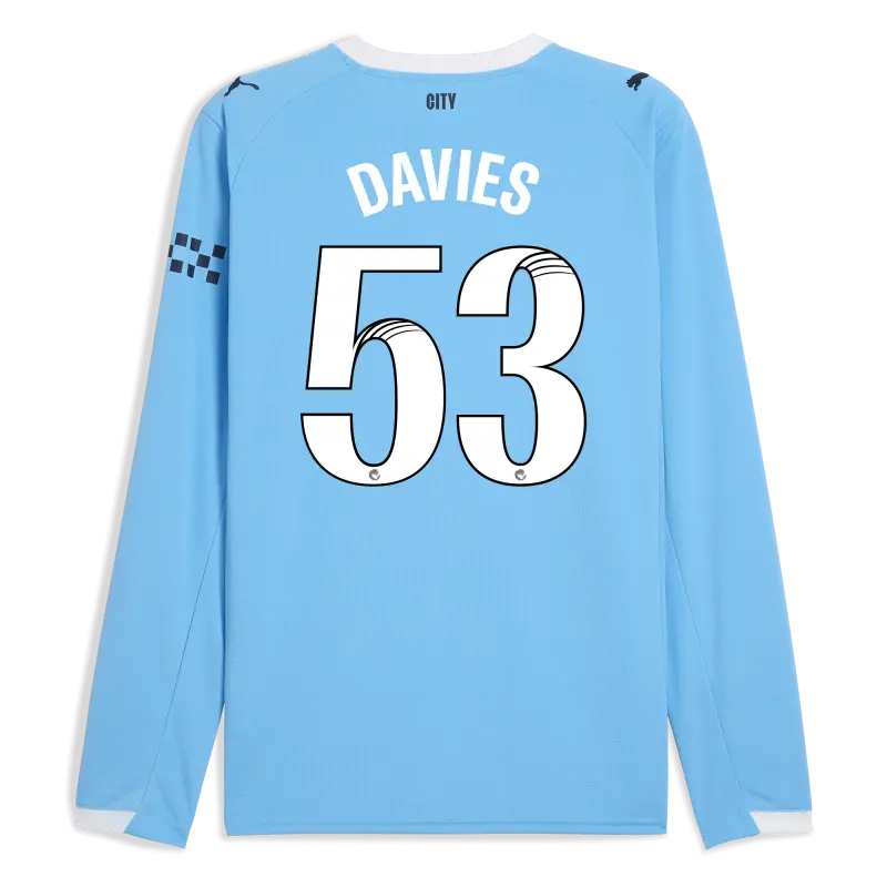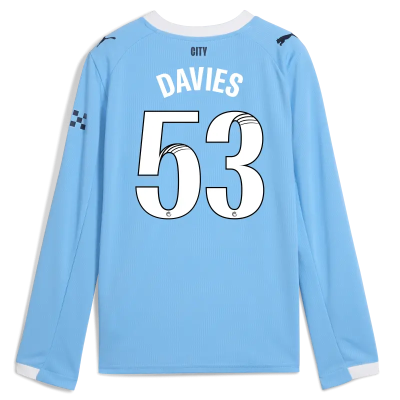 Manchester City Home Jersey 2025/26 Long Sleeve With DAVIES 53 Printing