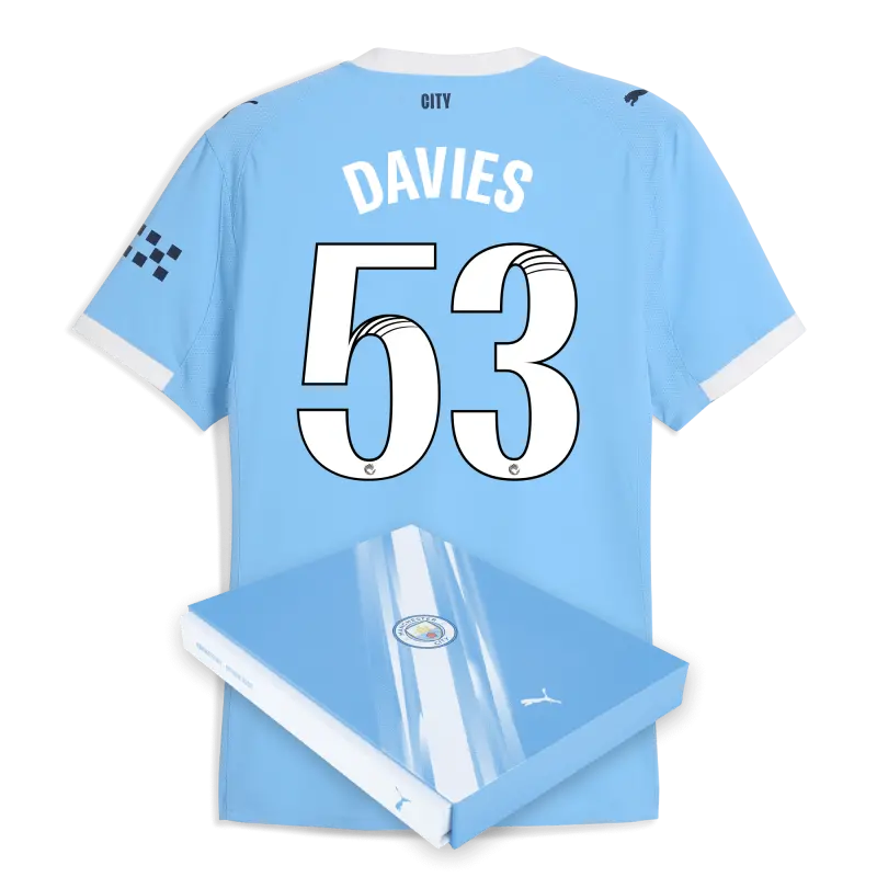 Manchester City Home Authentic Jersey 2025/26 With DAVIES 53 Printing in Gift Box