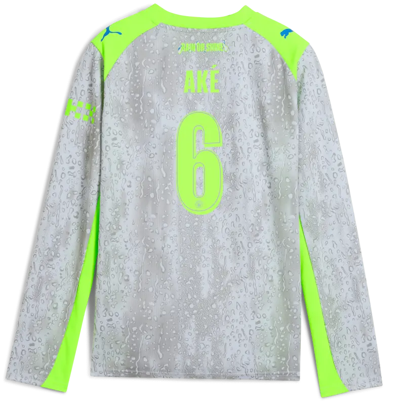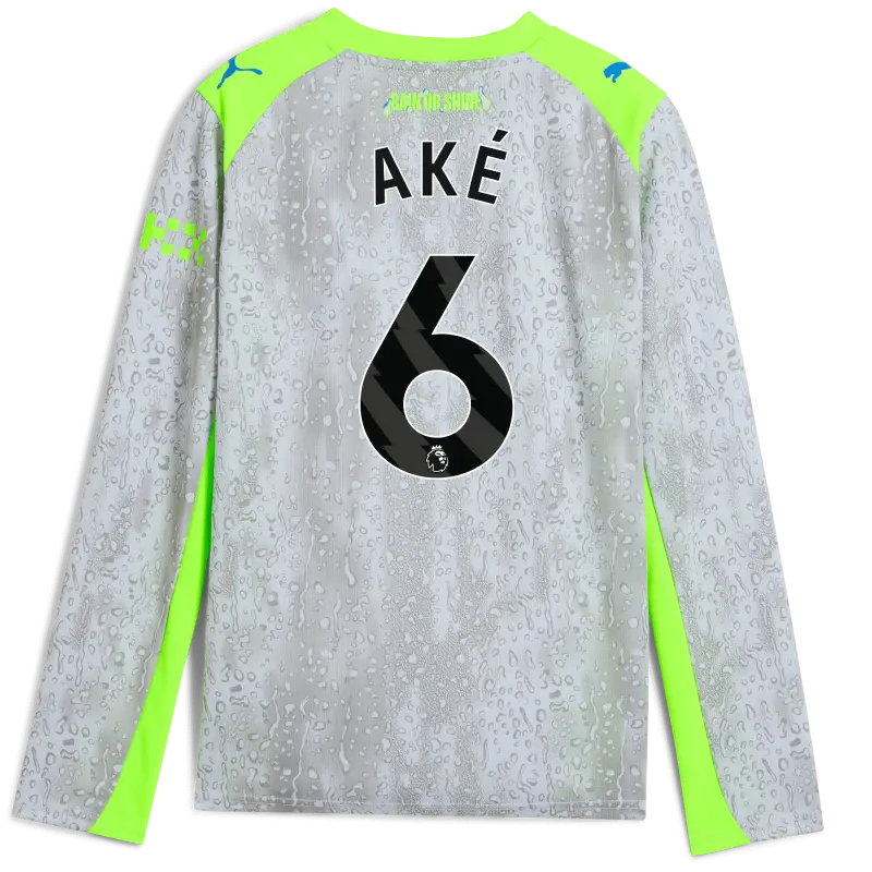 Kids’ Manchester City Third Jersey 2025/26 Long Sleeve With AKÉ 6 Printing