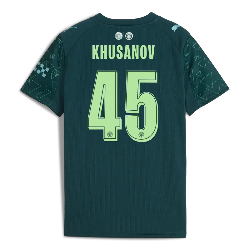 Kids’ Manchester City EA SPORTS FC Jersey 2025/26 With KHUSANOV 45 Printing